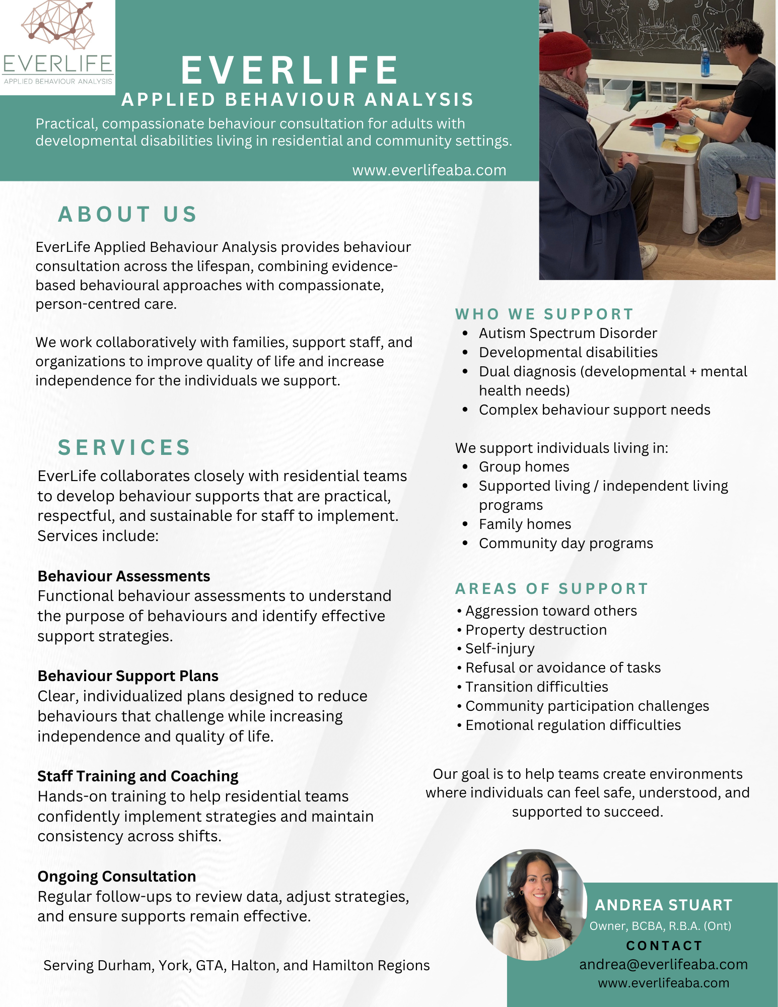 EverLife provides behaviour consultation for adults with developmental disabilities living in residential, supported living, or community environments.
